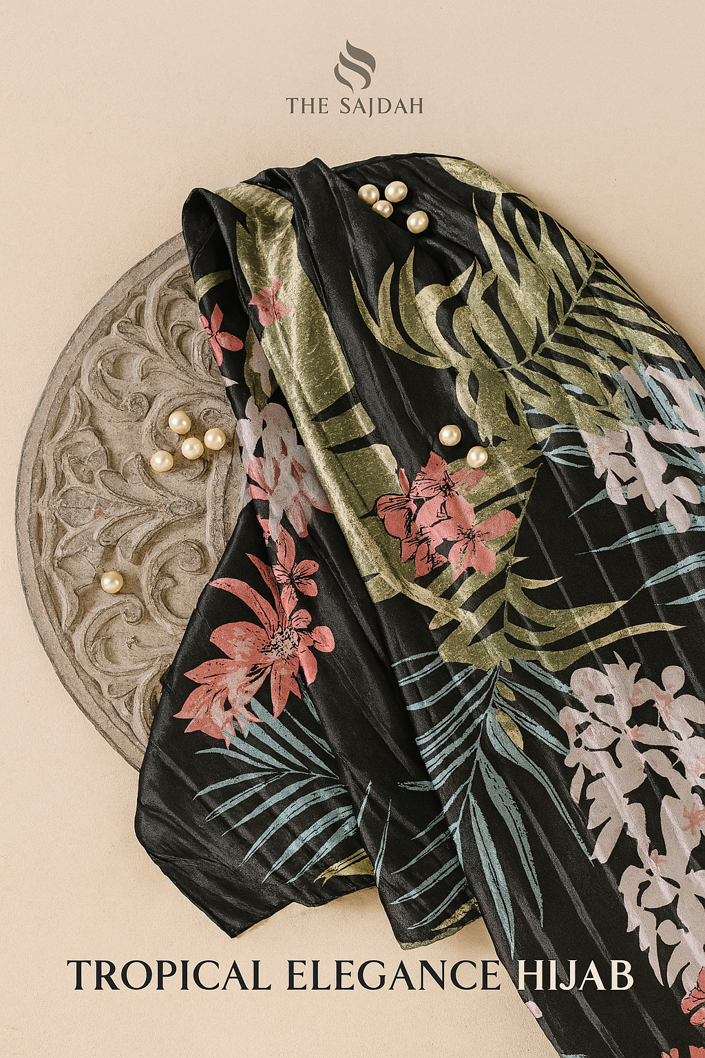 Island Floral Hijab- Elegant Satin Scarf