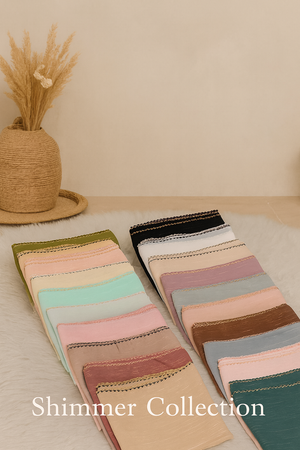 GOLDEN SAND, DEEP TEAL SHIMMER, NAIVE PEACH SHIMMER, SEAFOAM, CHAMPAGNE SHIMMER, TAN BEGE, PEACH NOUGAT, SEAMIST, PEARL NOIR, TAUPE SIMMER, DUSTY SHIMMER, CHOCOLATE SHIMMER, BLACK NOIR SHIMMER, CREAM NOIR SHMMER, MINT SHIMMER, BLUSH SHIMMER, LILAC SHIMMER, OLIVE SHIMMER, BEIGE NOIR SHIMMER, SAGE SHIMMER |