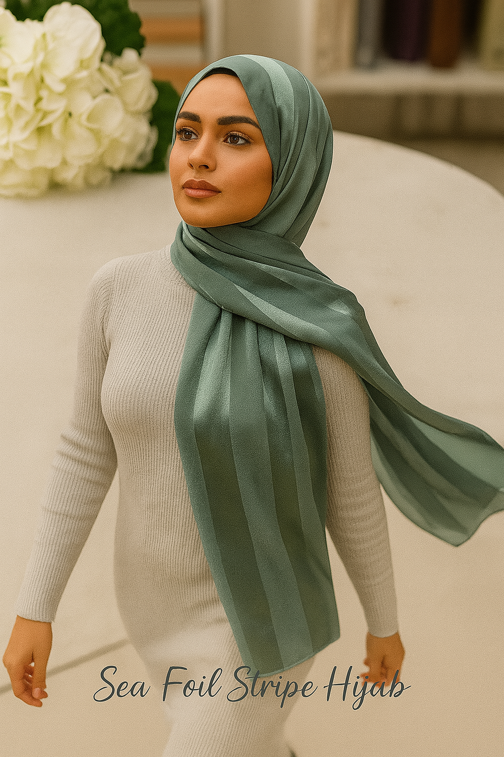 SATIN STRIPE CHIFFON HIJAB- PREMIUM COLLECTION